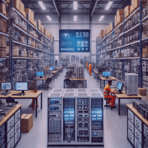 Screamer Electronics facility showcasing advanced telecom equipment repair, spare parts management, and warehousing operations, adhering to OEM specifications and ISO 9001:2008, PCR, and NOSA certifications.